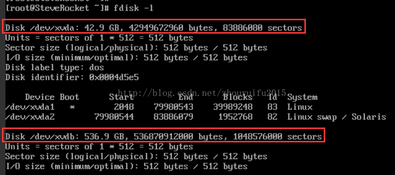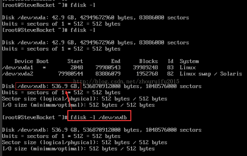 查看指定磁盘的分区情况:fdisk -l /dev/xvdb